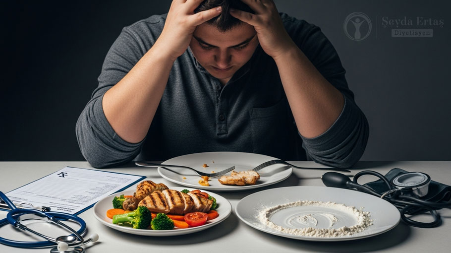 Your brain won't feel satisfied until your stomach is full. Starving yourself is the biggest mistake in obesity treatment. You need to fill your plate with low-calorie, high-volume foods (like vegetables, salads, and soups) to satisfy both your eyes and your stomach.